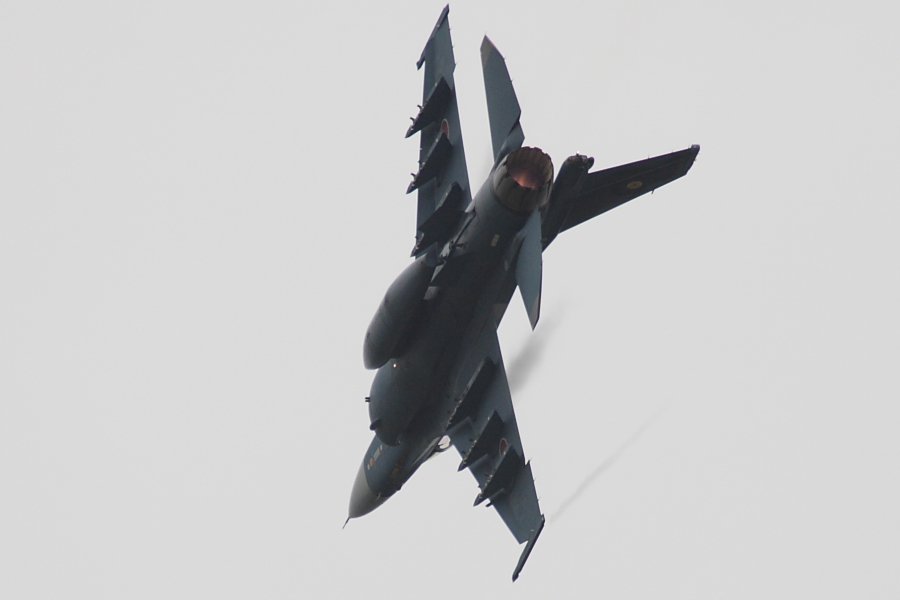 機動飛行中のF-2。 |