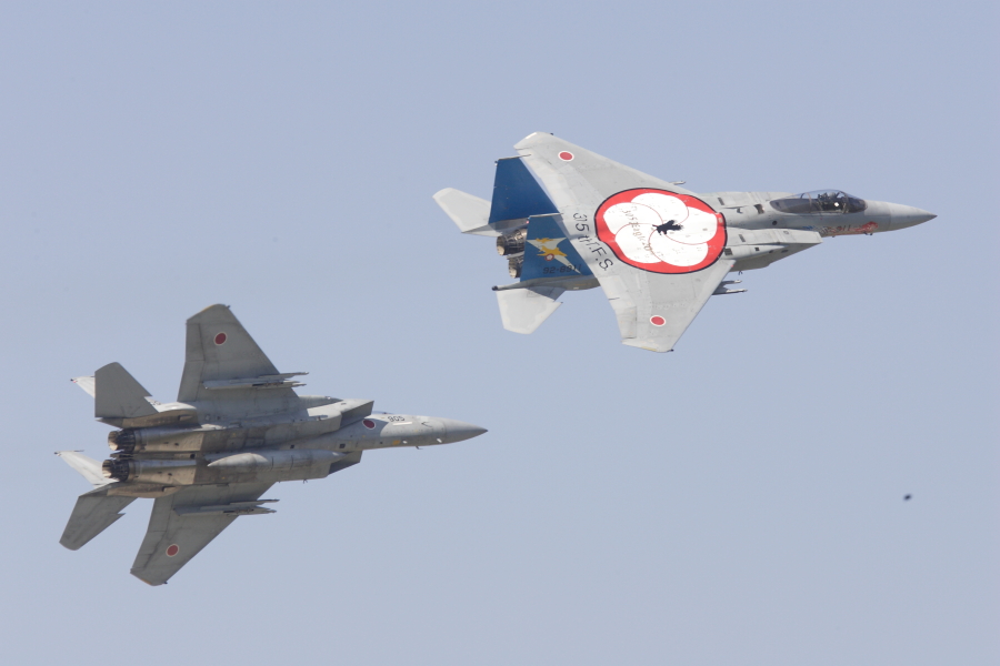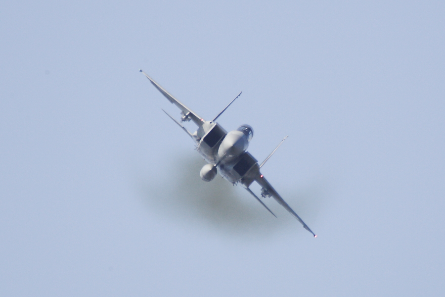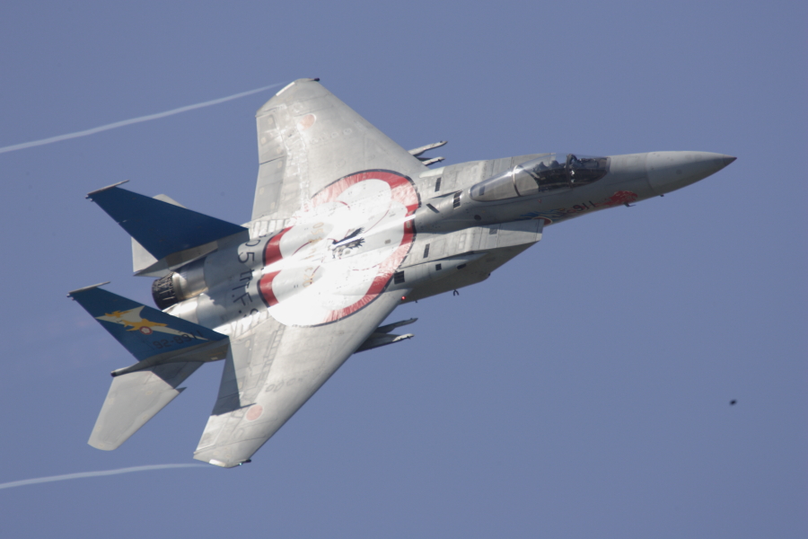 百里ではブルーインパルスの展示がありませんでした。その代わり、RF-4、F-15、F-4EJが午後も派手な機動展示を見せました。しかし、機動に振り回された為か、私のカメラが壊れました。シャッター幕が脱落しました。修理費3万円です。