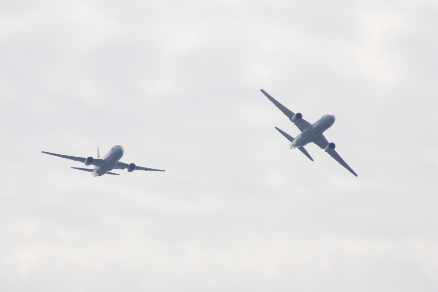 | 編隊を解散するKC-767。この後着陸するのですが、機体間隔が短く、まるで戦闘機がコンバットピッチで着陸するかの様でした。 |