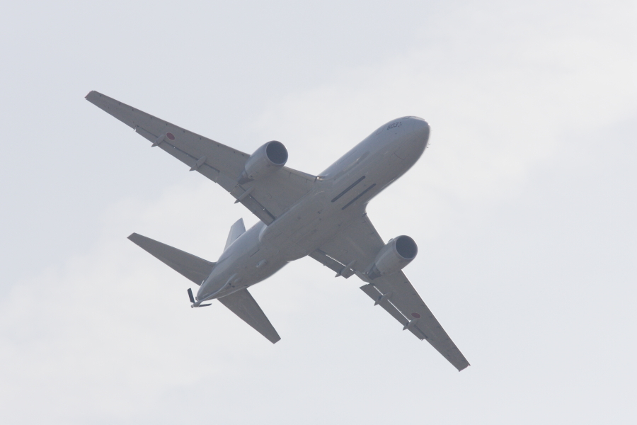 戦闘機に比べれば、はるかに大きいKC767ですが、戦闘機よりはるかに静かです。静かに進入し、旋回を実施するKC767 |