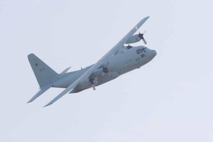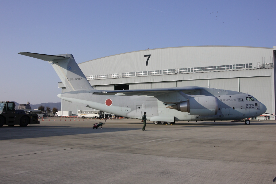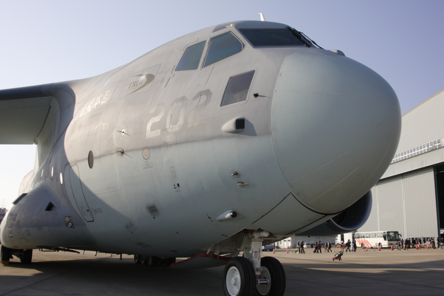 C-2は大きいです。全景を写すのが大変でした。いつになったら展示飛行してくれるのでしょうか? |