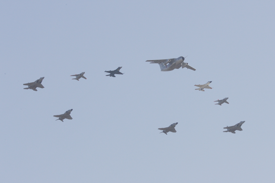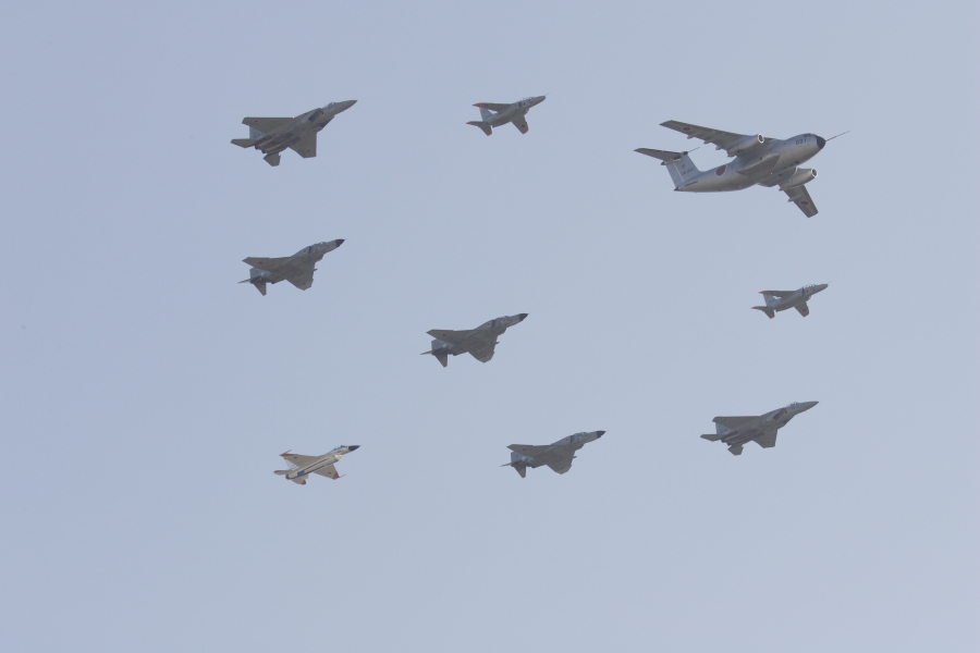 異機種大編隊 その2。その1からF-2が1機抜けて、F-4が1機増えています。 |