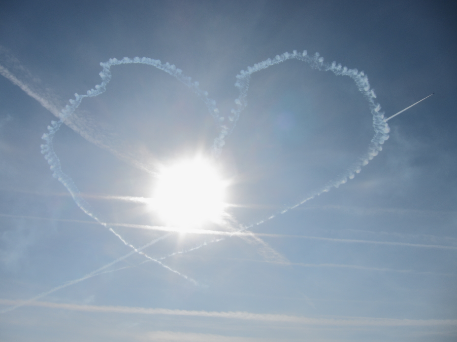 | ハートマークを射抜く4番機(右上)。岐阜はモロに逆光になるんで、撮影はいろいろ大変です。 |