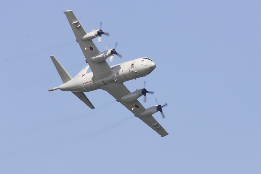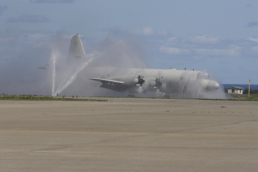 | 飛行展示機ではなく、たぶん哨戒から戻ってきた。海上低空飛行で付着して塩分を洗浄します。 |