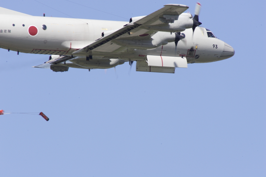 P-3Cからの救難物資の投下展示。P-3Cから物を落とす展示は初めて見ました。 |