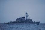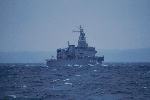 やがて、左前方に影が現れる。水平線までの雲を背景にして、ダークグレーの、まるで幽霊のような、縦長の影がひとつ、いや、その後ろにもう一つ、さらにひとつ。形の定かでない影は、急速に形をはっきりとさせ、艦影となる。時刻は12:13。