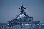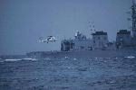 | 空砲を発射する「くらま」 | 海面を突き破るようにして浮上する潜水艦 | 「はるさめ」より発艦するSH-60Jヘリコプター | 高速に、そして、軽快に旋回するミサイル艇2号 |