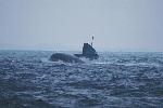 続いては、4隻の潜水艦「たけしお」「ゆきしお」「さちしお」「はましお」による潜航と浮上である。「うずしお」(これは潜航しない)を先頭にやってきて、潜航と浮上を繰り返す。海面に突き上げるように浮上してくる。浮上後すぐにはトリムの調整ができないようで、しばらく艦首が上がったままであるのが興味深い。