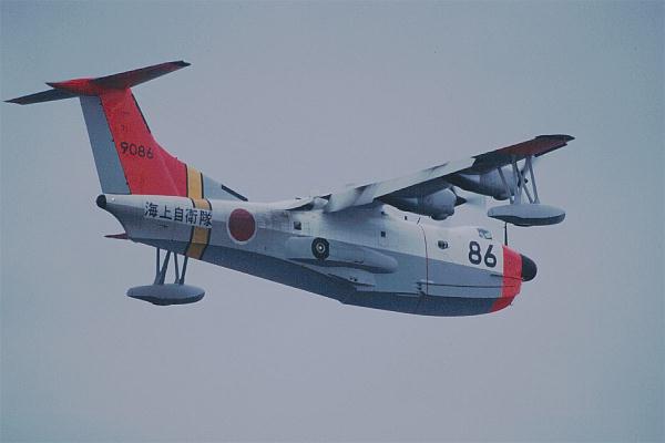 続いては、航空部隊である。後方より低速で2機のUS-1救難飛行艇が左舷側を通過していく。2機が前後に並んだ隊形である。着水展示が行われる予定であったが、風向きが合わないのか航過のみとなった。