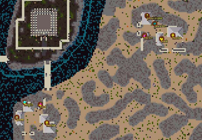 ヒーラー x2, 道具屋, 銀行, 宝石屋, 裁縫屋, 魔法屋, 防具屋, 食物屋