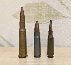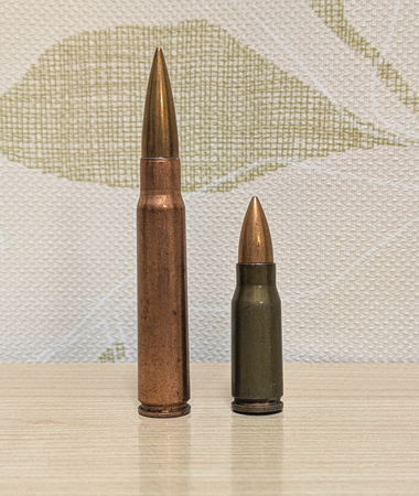 9/15(月) あれ、そんな簡単なスペマで言っちゃうの? もっと機体の背中全面を使った和柄のスペマ機を用意してあげればいいのに。 トランプ関税が銃器市場へ与える影響予測 2025年9月12日時点 | | Gun Professionals Web >NRAはトランプ政権の“トランスジェンダー銃器保有禁止案”に9月5日反対声明を発表した。 ああ、やっぱガチの武装権擁護の人らはあの話には反対してんだ。 そりゃそうだわなぁ。 ってか、こうやってトランプ政権はMAGA派を喜ばせるためだけに、 足元のMAGA派以外の支持をじわじわ切り崩してると思うな。 そう言えば今日はこんなツイートをしましたが、 折角の夏休みなんで都内にお出かけしてきました。 目的は御徒町の無可動実銃屋であるシカゴレジメンタルスなんだけど、 御徒町まで行って帰ってくるだけではもったいないので秋葉原で電車降りて、 エチゴヤ秋葉原店から斜向かいの地下の41PX秋葉原店、 同じビル3階のレプマートを覗いてから御徒町まで徒歩移動。 いやー、なんか久々に鉄砲屋巡りをしたなぁw しかし今日の都内は非常に暑く、秋葉原から御徒町なんて近距離移動でも、 途中で「ダメだ、自販機でジュース買ってしのげる暑さじゃない…どっか冷房の効いた喫茶店でも入ろう…」 と早々に音を上げる暑さでした… で、シカゴレジメンタルスでは買うものは決まってるんだけど、まずは初めてだし店内を一巡。 しかしやっぱ実銃はいいねぇ… 実銃にしか出せない雰囲気というか重厚さがマジで堪らん… 例えばこのブレダ機銃の表面処理の剥げ具合ときたらもう… ![]() 他にも、綺麗に色褪せたBARを見てよ。 ![]() トイガンではこんな仕上げは絶対無理だよねぇ… 一方で、塗装の剥げはあるがこんなにきれいな状態で残ってる世界初のアサルトライフルであり、 個人的には博物館所蔵アイテムじゃない?とも思えるMP44が たった66万ポッチと意外にお手頃?価格なのを見てビックリしたりもした。 ![]() あとは一番最後に、この棚の前で ![]() 「いずれ絶対買ってやるからな!特に一番下のオマエ!それまで絶対売れんなよ!!!!!」 と鼻息荒く心の中で話しかけて来たのでしたw で、シカゴレジメンタルスで買ってきたのはこちら。 ![]() 右から順に40mmグレネードの空薬莢、.30-06口径の実弾ダミーカート、 7.62x51弾、いわゆる7.62NATO弾の実弾ダミーカート、 さっき画像もあげたMP44の8mmクルツ弾のダミーカート。 で、これ買ってきて何がしたかったのかと言うと、これ。 ![]() ![]() ![]() これは独露米の3カ国軍が各々二次大戦から戦後にかけて主に使用した弾薬です。 まずはこちらはドイツ。 ![]() 左が8mmモーゼル弾といって、ドイツが二次大戦で使ったモーゼル98kで使った弾。 まぁ、一次大戦頃からの一般的なライフル弾といった感じ。 で、右のが8mmクルツ弾と言って上でもあげた世界初のアサルトライフルMP44の弾です。 ずいぶんと寸詰まりになってるのは火薬量を減らすためで、なんで火薬量を減らしたかと言うと、 8mmモーゼル弾をフルオートで撃つと反動が大きすぎて扱いきれないために反動を減らすために火薬量を減らした。 これで歩兵の小銃でセミオートとフルオートが撃てるようになって、世界初のアサルトライフルが誕生したわけ。 8mmクルツ弾のクルツはドイツ語の短いという意味で、口径は同じままで短くなってるからこう名付けられた。 この手の弾はライフル弾と拳銃弾の間ということで中間弾薬と呼ばれたりもする。 ではお次はロシア。 ![]() 左は7.62ロシアン弾といってロシアが二次大戦で使ったモシン・ナガンで使った弾。 これは正式名称は7.62x54mmRと言うんだけど、最期のRはリム弾と言って 弾の一番下の部分が出っ張っている形状の弾を指す記号。 ライフルにボルトアクションが導入される前の中折れ単発なんかの手での後装式ライフルの時代は この出っ張りが弾をチャンバー奥に入り込むことを防ぎ、素早い排莢を可能にするためのもので、 ロシアはこのリム弾を帝政ロシア時代からずっと使っていた。 そして真ん中が7.62x39mm弾でAK-47の弾。 ご覧の通り扱いの厄介だったリムの出っ張りはなくなり、口径は変わらないままで寸詰まりになった。 寸詰まりになった理由は上の8mmクルツ弾と同じでフルオートが撃てるAKで扱うため。 なのでこれも中間弾薬と言える。 そして右は5.45x39mm弾で、AK-74の弾。 これは次に紹介するアメリカの7.62mm弾から5.56mm弾への移行に対抗するためにできた弾で、 口径が小さくなってることから、こう言うのは中間弾薬とは言わず小口径高速弾みたいな言い方をされる。 ちなみに一番左の7.62ロシアン弾はこうしてみると骨董品レベルの弾のように思えるが、 実は有名なドラグノフとか、紛争地帯では超見るPK機関銃では今も使われてて、 現代でも世界中で普通に流通してる弾でもあります。 では最後はアメリカ。 ![]() 左は.30-06弾というM1ガーランドで使われた弾。 ちなみに.30-06は弾の直径が0.30インチの1906年に採用された弾を示してて、 0.30インチは7.62mmなので、