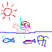 男 | 30くらい | プログラマ | まず、最初に目に付くのは、いい加減な絵とまったく推敲されていない文章である。よって、この犯人は時間に余裕のない人間であることが分かる。また、色をつけていないのは時間がなかったためとは言え、体の輪郭線の肌色があまり濃くない。よって、犯人はプログラマなど、コンピュータ関係者で、普段室内で働いているために日に焼けていないと考えられる。ここで注意したいのは、海水面が体を中心に窪んでいることである。彼には最近なにか、自分に自信を持つような出来事が起こったに違いない。 |