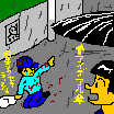 男 | 30くらい | フリーのコンピューターソフト技術者 | 絵に非常なこだわりがある。会社のような組織には入っていないと思われる。男の子の方が本人だろうか。今時、子どもが泥んこなのを見て声をかける大人は、とても少ない。 |