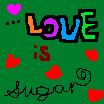 男 | 613くらい | 学生 | LOVE IS SUGERというセンスが、若さを感じさせる。が、絵のレタリングはなかなかのもの。カラーリングは男性のものらしく見える。大胆で、元気がいい。歌詞のようだが、ナンセンスギャグの一端を見せている。 |