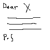 女 | 16くらい | プー | “P.S”というのは「追伸」と言う意味です。 付け足したいことがあるときに使うものなのだが、最近のバカ娘たちは何を勘違いしているのか、本文より重要なことをP.Sに書いたりする。っと言っている私もまだ16のバカ娘である。 そういえば、友達が「P.Sだいすき!」と言う手紙をもらって、どうしようとか言っていたが、この場合のP.Sはプレステのことだったらしい。勘違いに気を付けようね |
