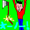 ![]() | おはこんばんちわ! 200の中盤から、旅に出ていました。 挨拶はここらへんで・・・ この話はある外人さんのお話です。 いつものようにまき割りをしていた ボブ(24)は人生に疲れていたような、顔をしていました。 そんなところに、こんな事件が おきようとは・・・ ボブがまきをわっていると、 きゅうに、『ばき!』というような 鈍い音がした。 「ナンデースカ?」といったとたん! 斧がおれてしまった! 「オーウ! オノガオレテ、オーノー!」 ・・・すべった? |