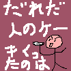 男 | 16くらい | ケーキ屋けんちゃん | こんちわっす!エンペラー吉田だよ。 どうやらこれで事件解決らしい・・・ それにしてもかわいいね〜 確かに楽しみに取って置いたものを取られたら悲しいよね? でもこれって・・・犯人が犯人を捜してるんですけど・・・ |