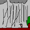 男 | 25くらい | 飴細工士 | 雨を黒い線で描いているというとこから、やはり台風5号の激しい雨の影響を受けているのは確か。東海地方に住んでいる私にとって台風は一大イベントでした。(だって学校が休みになるんだもん。)画面右手に見えるのが土砂崩れを起こす山。自然の驚異に畏怖をいだく姿が見てとれる。「雨が好きです。」の(雨)は(飴)の誤字。 |