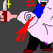 ![]() | これは、小学生の頃に先生からもらった小刀で切れ味を確かめようとして親指を切って思いのほか血がどろどろとでてきた時のものです。 すばらしく血が紅かったのにすこしながら感動を覚えざるを得なかった。 |