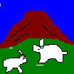 男 | 15くらい | 学生 | 阿蘇山を描きたくなる年齢を考慮してそうろう。しかし えらい低い阿蘇山だ。見下ろすような山だよ。手前に見える動物は右はサイだね。 左手は・・・う〜ん??干支のうさぎかなぁ?うん?髪が生えてるし!よく見ると人面うさぎ!? |