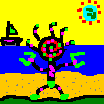 女 | 27くらい | OL | 海の絵を描いてあるところから海岸近くの住人であろう。顔?頭?の特徴から天然パーマで悩んでいるか、小さいときからフジテレビの番組が好きだったかのどっちかである。全体の色使いから、絵的センスを持った広告代理店か趣味で絵を描く人ってとのはどうだい? 山さん? |